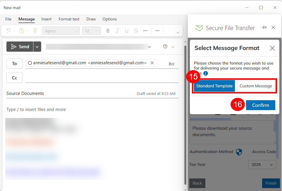 - If the recipient is in the Client Management, the user can start typing in the client's name and it will auto-populate the information. This will only occur if the user is using the TO field from the plug-in.