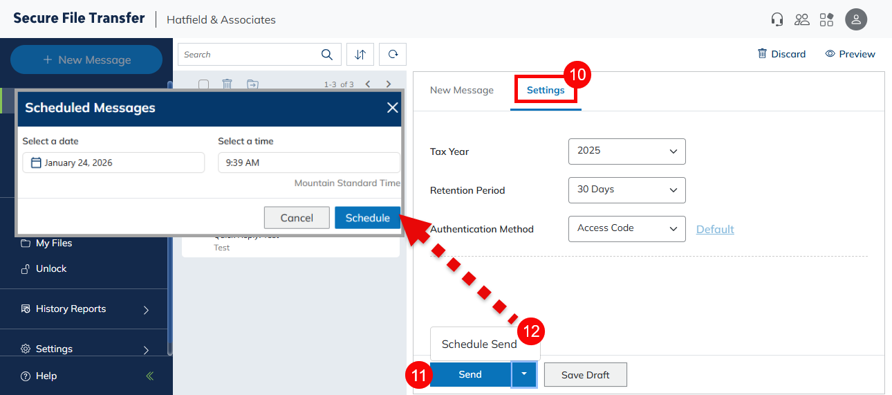 - Click Schedule Send to select when the message will be delivered.